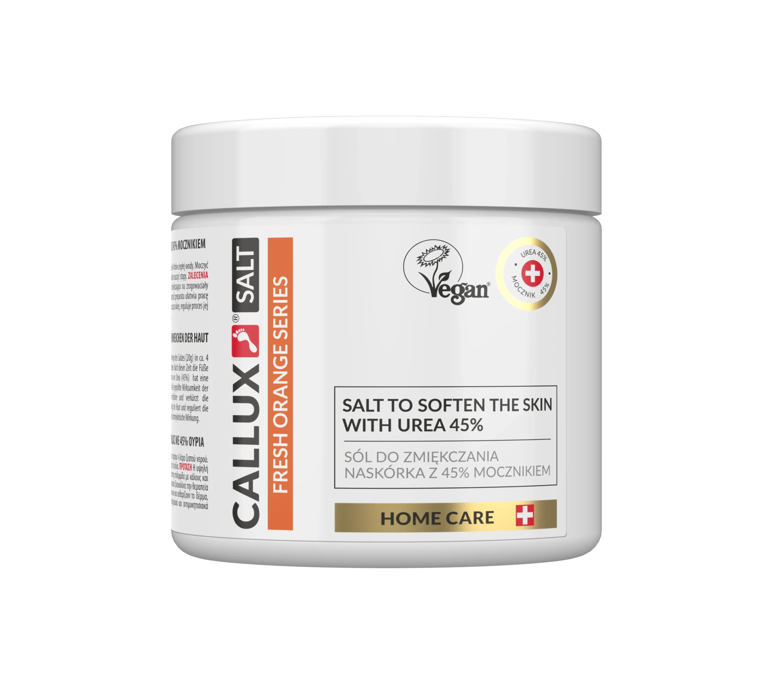 Zmiękczenie, oczyszczenie i relaks w jednym zabiegu. Wysokiej jakości kryształki soli wzbogacone aż o 45% mocznika to niezastąpiony preparat w profesjonalnych zabiegach pedicure. Skutecznie zmiękcza zrogowaciały naskórek, modzele, odciski oraz nagniotki, przygotowując skórę do dalszych etapów pielęgnacji. Formuła o potwierdzonej skuteczności działa nie tylko zmiękczająco, ale także intensywnie nawilża i oczyszcza skórę, regulując jej naturalny proces rogowacenia. Dzięki właściwościom przeciwbakteryjnym i przeciwgrzybiczym zapewnia dodatkową ochronę, a świeży zapach pomarańczy działa relaksująco i odprężająco.