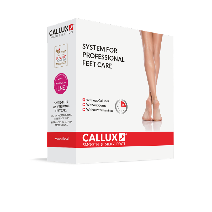 Po upływie wskazanego czasu kompres zostaje zdjęty. Przy pomocy skrobaka CALLUX SCRAPER usuwa się delikatnie rozpuszczony martwy naskórek, modzele, odciski i zgrubienia. Skóra staje się wyraźnie gładsza już po pierwszym użyciu.